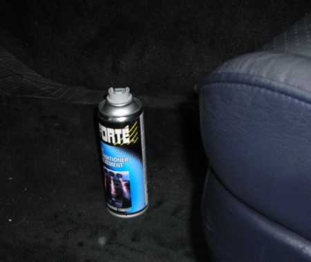 Step5. Place the can on the passenger foot well area so that it remains upright at all times. Step 6. Close passenger door and wait 10 minutes for the treatment to work. During this time, the can will continue to discharge for 5 minutes. This is normal. Step 7. Open all doors and remove empty can. Your air conditioning will now be fresh and clean and healthy.. Thanks to Andrew Higgins for this page