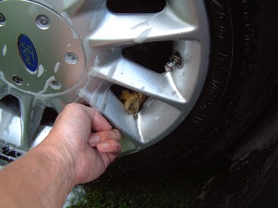 sponge and plenty of fresh water, otherwise the brake dust can be picked up