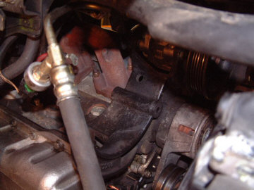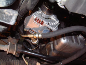 electric fan housing upward to free the alternator bolt. The alternator can then