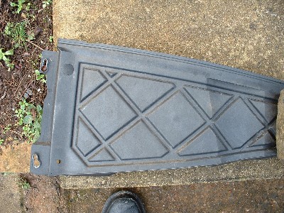 The top bonnet seal pulls off from the engine bulkhead. Suddenly, it is apparent that the bulkhead here is split, secured with 'fir-tree' fasteners each side. Pull away the soundproofing and removing these fasteners enables the battery bulkhead to be removed and opening the whole of the battery shelf.
