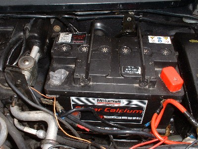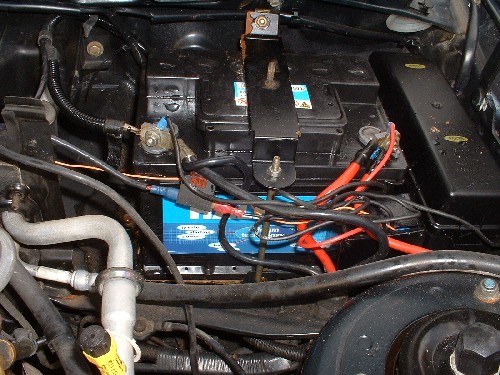 Owners are often asking how on earth they change the battery on the Scorpio - the shelf is tucked behind a bulkhead beneath the windscreen. It should also have a battery cover fitted - and if not one should be fitted at once, because water will pour over the battery and may cause damage to the auxillary fusebox next to it. The Original fitment battery is a Cadmium battery (Pb) (although they are described as Calcium on the case) and while these provide excellent performance, they tend to fail very quickly, sometimes literally overnight. Symptoms include 'dancing needles' (instruments flick round when starting), and electronic modules resetting, such as the Climate Control. This is caused by the system voltage dropping below 10 volts while meeting the demand from the starter motor.