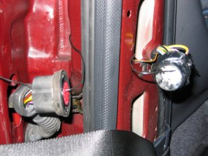 Levering plug out Once through the multi-connector, the earth wire connects to the door open switch which is about 6" away. There will be a wire already in place there \endash I fixed it to this and then connected the other end of the cable to my diode and plug in the door. Allow enough slack in the car body side to open the multi-connector in the future.