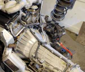 the A4LDE gearbox through two multiplugs, then runs up over the bell housing and