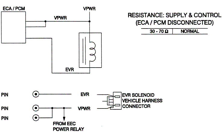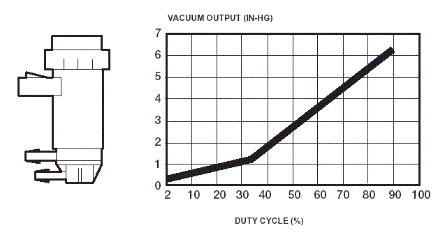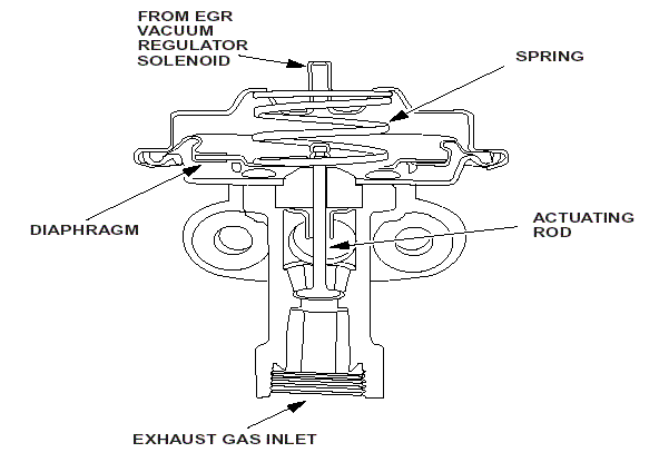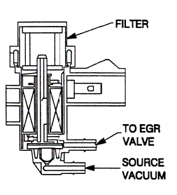 The EVR regulates the vacuum to the EGR valve and is controlled by a pulse-width signal to open and close the EGR valve. As the duty cycle pulse width signal increases, the EVR increases the vacuum to the EGR which opens further and admits more gas into the inlet system. Vacuum not directed to the EGR valve is vented to atmosphere. Even at zero duty cycle (no voltage) some vacuum will still pass the EVR, but this is not enough to overcome the spring pressure. It is not until the EVR is at 40% duty cycle that the vacuum is enough to overcome the EGR spring pressure.