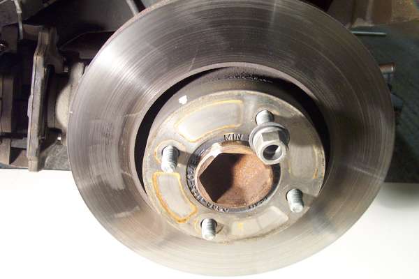| Mark the relative position of brake disk and hub and replace one wheel nut to
