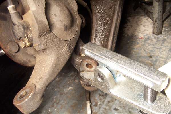 Once the bolt is removed, the shaft of the ball joint is still a tight fit