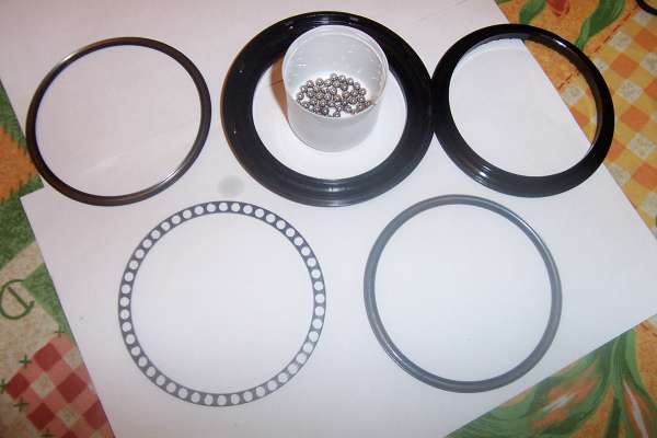 tracks, a plastic cage and 48 steel balls. These are loose so be careful