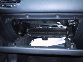 a clipped access panel in the roof of the glovebox.