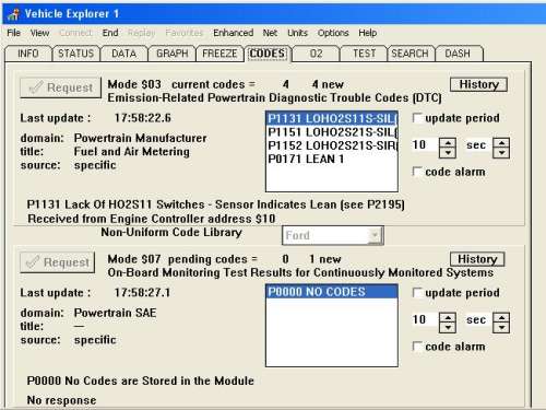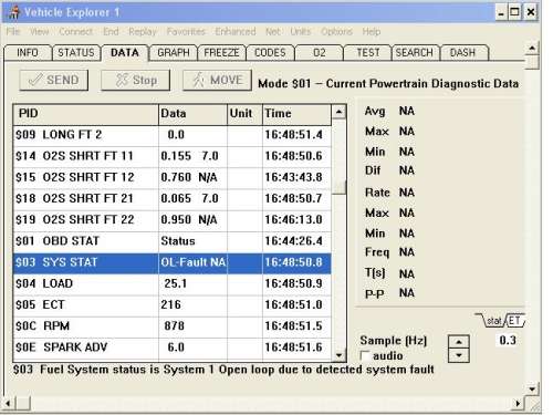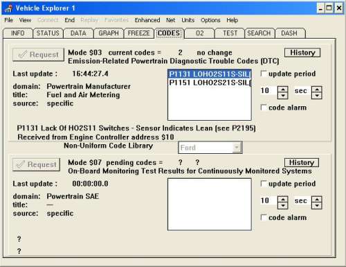 Brett bought his own OBD lead, ran the Vehicle Explorer on the HO2S sensors and