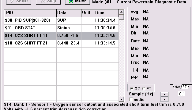 Vehicle Explorer is your window to the OBD events as they flash past: 0.1 Hz