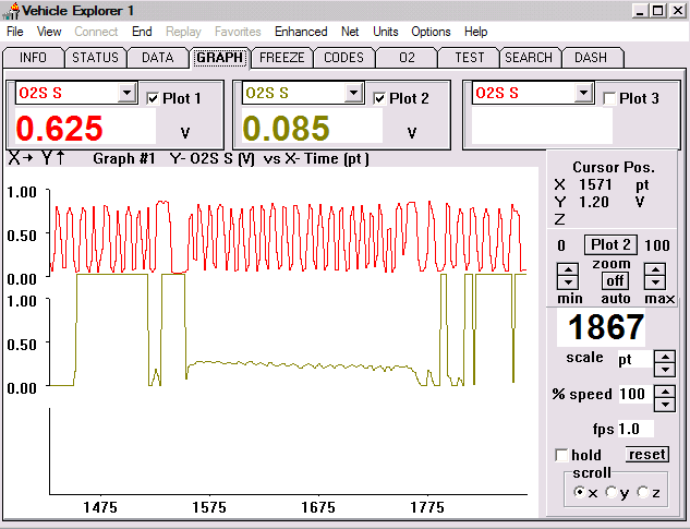 captured - the bottom trace is the Bank 2 sensor registering a DTC for