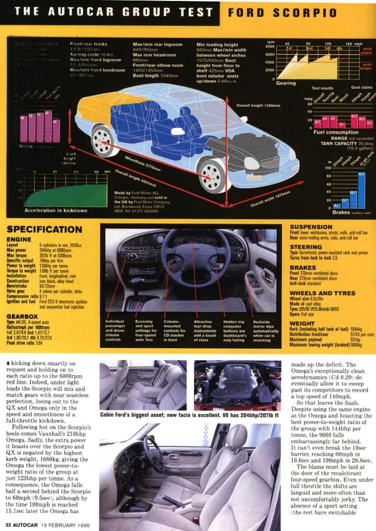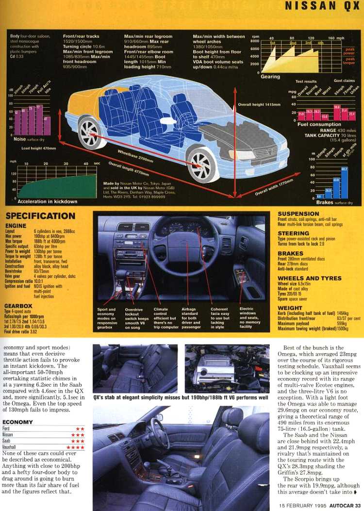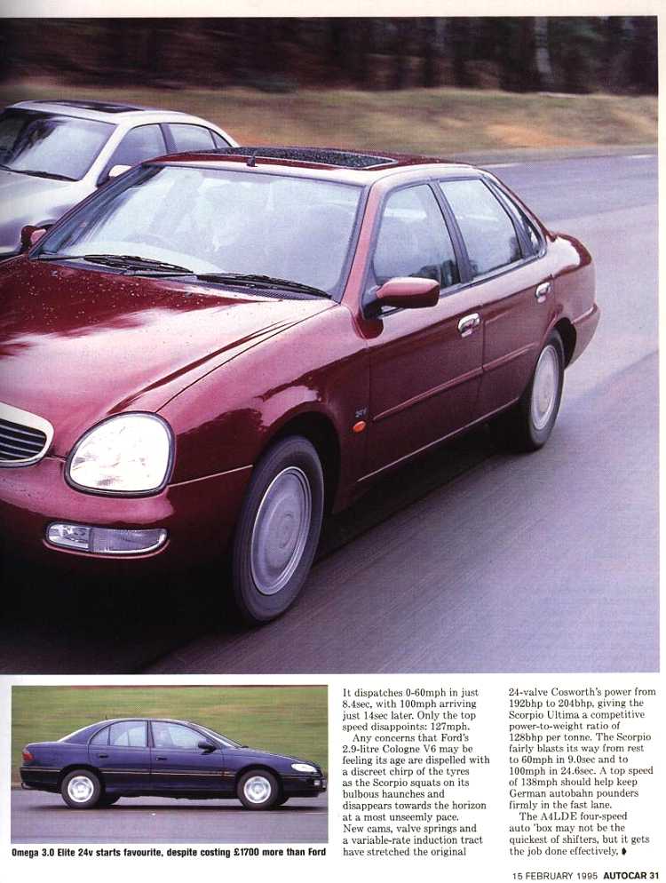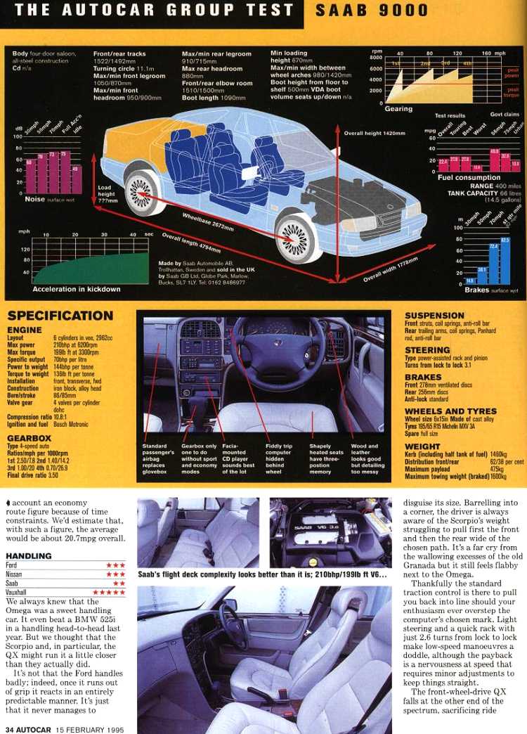 Feb 1995 Autocar New Scorpio V Saab 9000 V Vauxhall Omega V Nissan QX