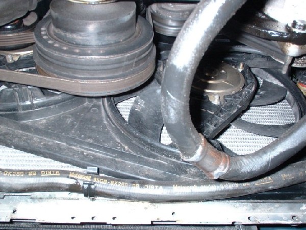 This hose on the 12v runs right across the bottom of the radiator and into