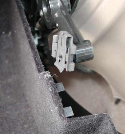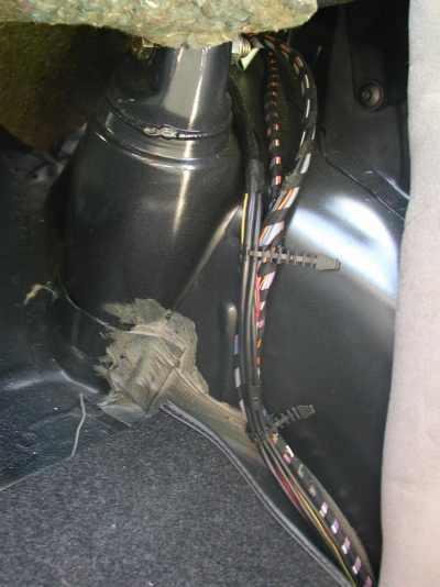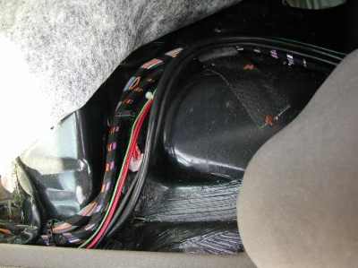 rear seat into the plastic trim of the passenger side floor pan and then up the