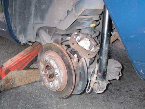 I was suffering from a squeak from the rear nearside of the car which was consistent with wheel rotation. Examination of the brake pads revealed that they were getting quite thin (80000mile) and I had the offer of having them done at cost +£10 so I opted for the easier way and had them done professionally. The rear nearside wheel bearing was not causing concern at this time. After having the pads replaced the squeak returned with a vengeance a couple of days later and I could see that the disc was rubbing very slightly on its outer edge. I thought that this was due to the fact that the discs were 0.5mm below nominal thickness of 9mm so I carried on and the squeak came and went. I eventually heard some rather distressing noises from the rear end so I thought it was time to throw caution to the wind and investigate...getting on in years and the thought of crawling under cars rather put me off but so did Mr Fords cost for his men to do the work (see later). I thought those days were over. On first jacking up the car I found that the wheel was behaving as though it had a Universal Joint for a bearing . It was not firm and tight like it should have been although the noises I had heard were not consistent with 'bearing failure' as I had experienced when examining vehicles in my previous life... or so I thought. I have since realised that one should NOT 'think', just investigate.