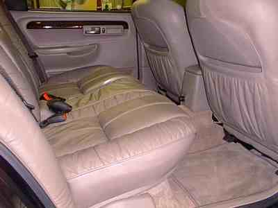 here. The picture on the right shows the site of a Coke drink spill which had stained the leather. What, you can’t see a stain? Neither can I. See Cleaning the Interior This car has the (optional in 1995) air bag for the passenger. Both front seats adjust for rake, height, recline and lumbar all by electric buttons on the outsides of each seat (memorised by one of three buttons for the driver).