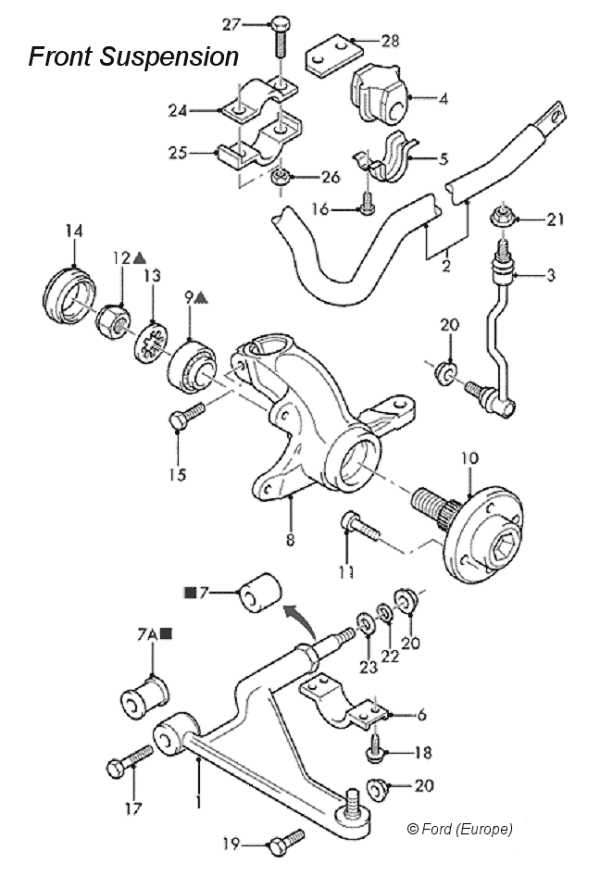 the problem: the inner rubber bush on the nearside front radius arm (wishbone)
