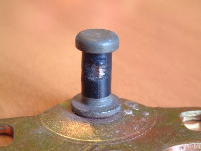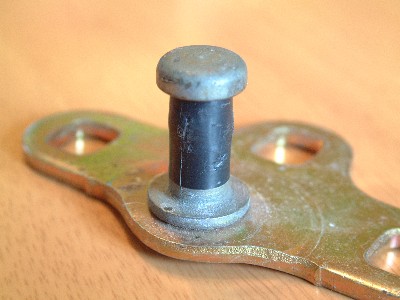 The latch pin surface is covered by a hard plastic sleeve to prevent a metal-to-metal contact between the pin and the latch lock. Here on the rear (non-struck) part, the latch sleeve is intact...