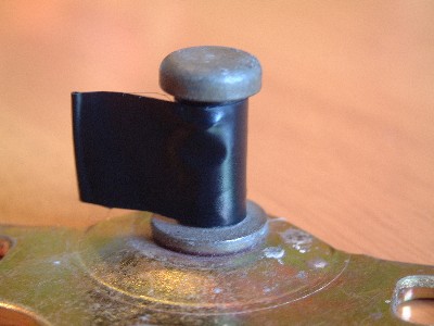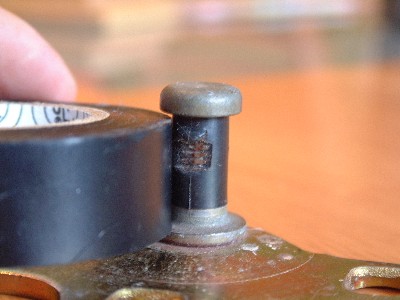 ...with ordinary black insulating tape. As you can see, the standard tape fits exactly round the latch of the pin.