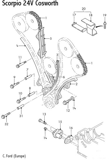 the pre-1995 Cosworth engine timing chains - a single